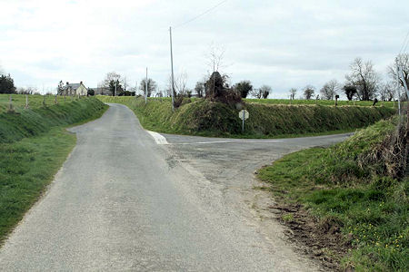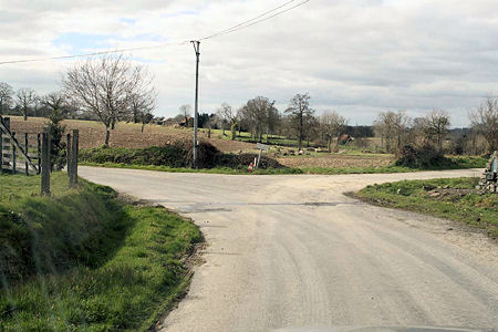 ……..a ‘T’-junction faced by a metal gate [above left]. Turn right here. Very shortly  after, at 3.25km, you take the first left, between the high banks of the bocage  [above right], and you’ve arrived at  Le Chenil du Caravelle!
