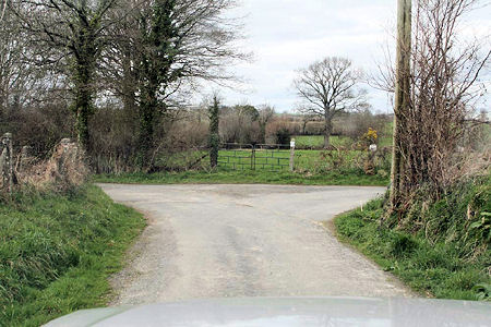 At 2.3km you will see a fork [above]. Turn right here. Continue to the  very end of this lane where you will see, at 3.0km………
