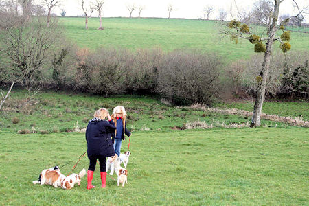 Unless specifically requested otherwise by clients, canine guests get a walk, on a lead, every day. Off-lead exercise would be entirely at the discretion of the client, and needs to be specifically requested. Our land is not bounded by any main roads, and is made up of a number of fields spanning a valley bisected by a stream, with several kilometers of hedgerow. There is enough to keep even the most discerning nose interested for the duration of their vacation with us!